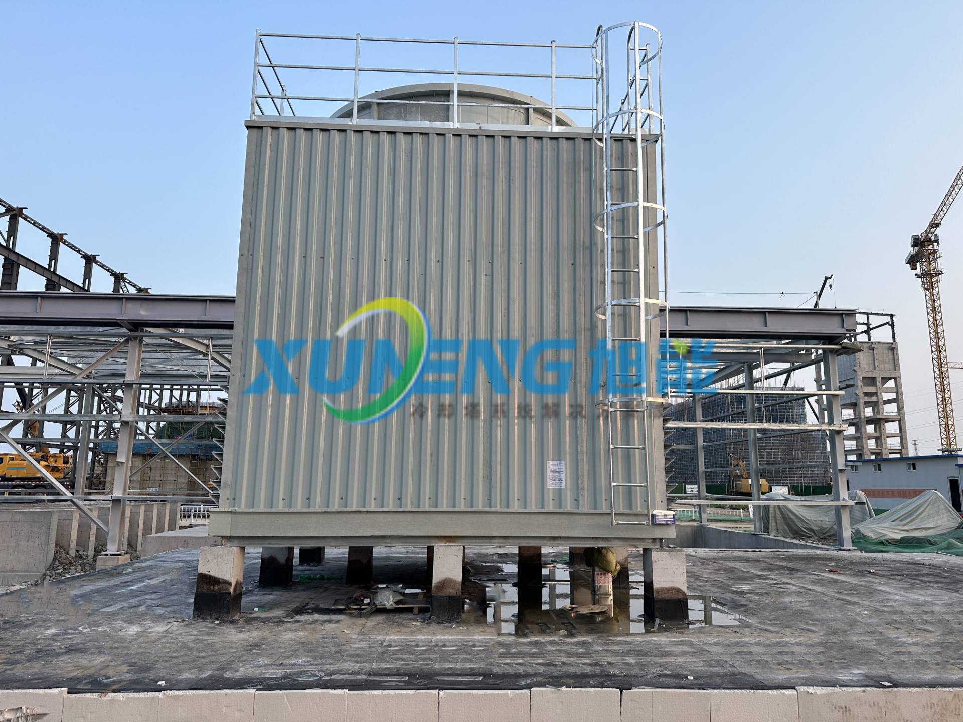 荆门方形横流式冷却塔工地完工