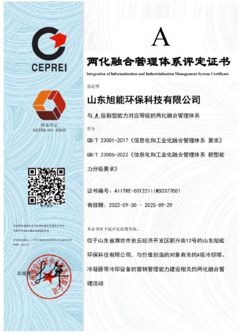 两化融合管理体系评定证书